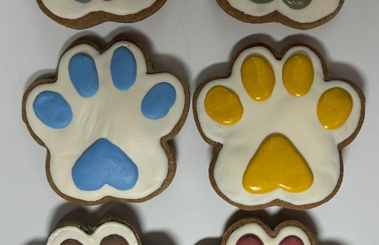 Our royal icing for our dog cookies are made of yogurt powder, non-fat milk, modified tapioca starch, egg whites, tapioca maltodextrin, apple pectin and potato starch. All of these ingredients are 100% safe for dogs.